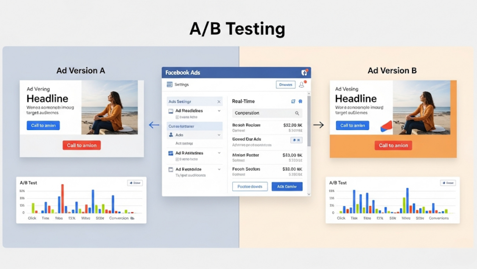 What Is A/B Testing in Facebook Ads? A/B testing, also known as split testing, is the process of comparing two