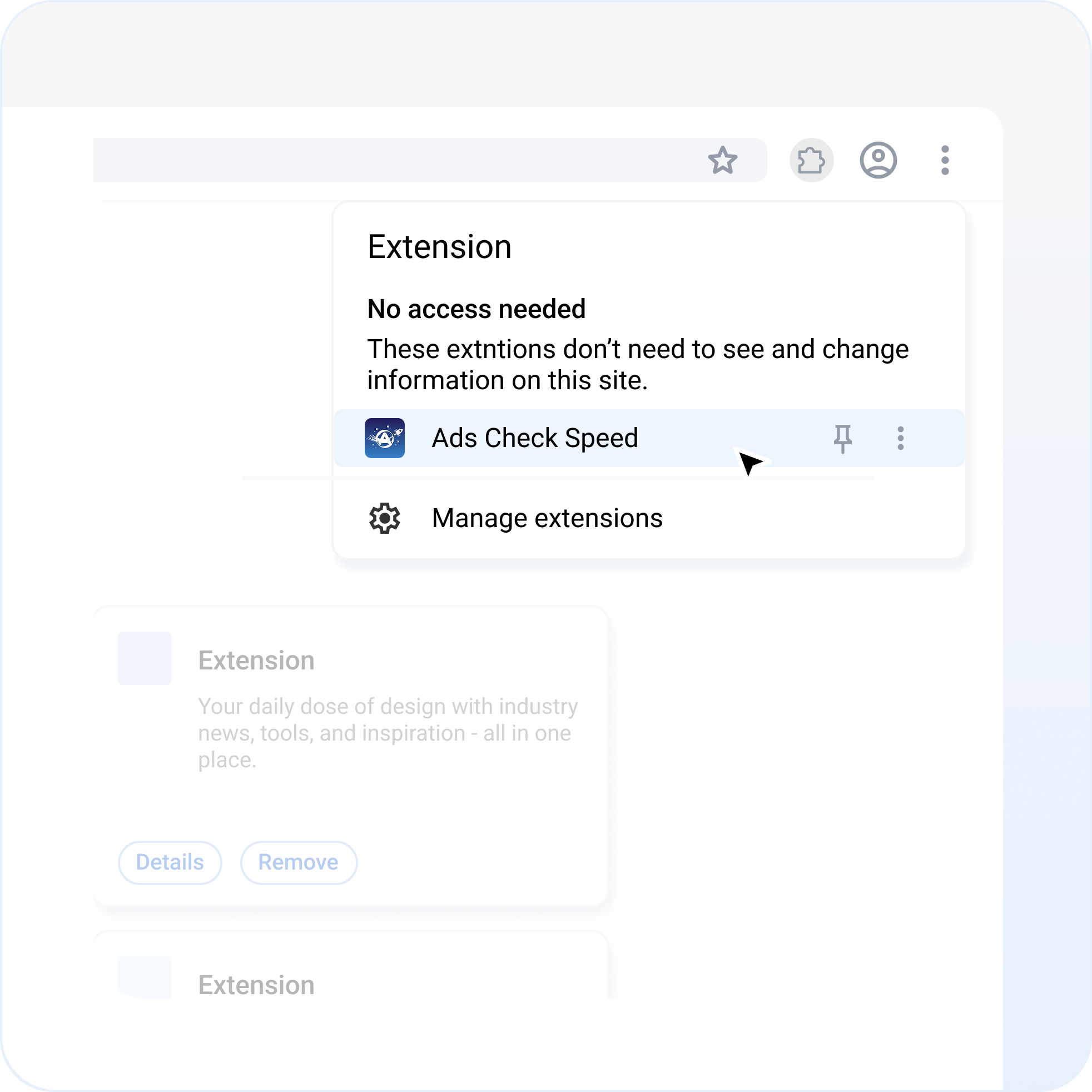 2. Go to settings on your browser and select Manage Extensions